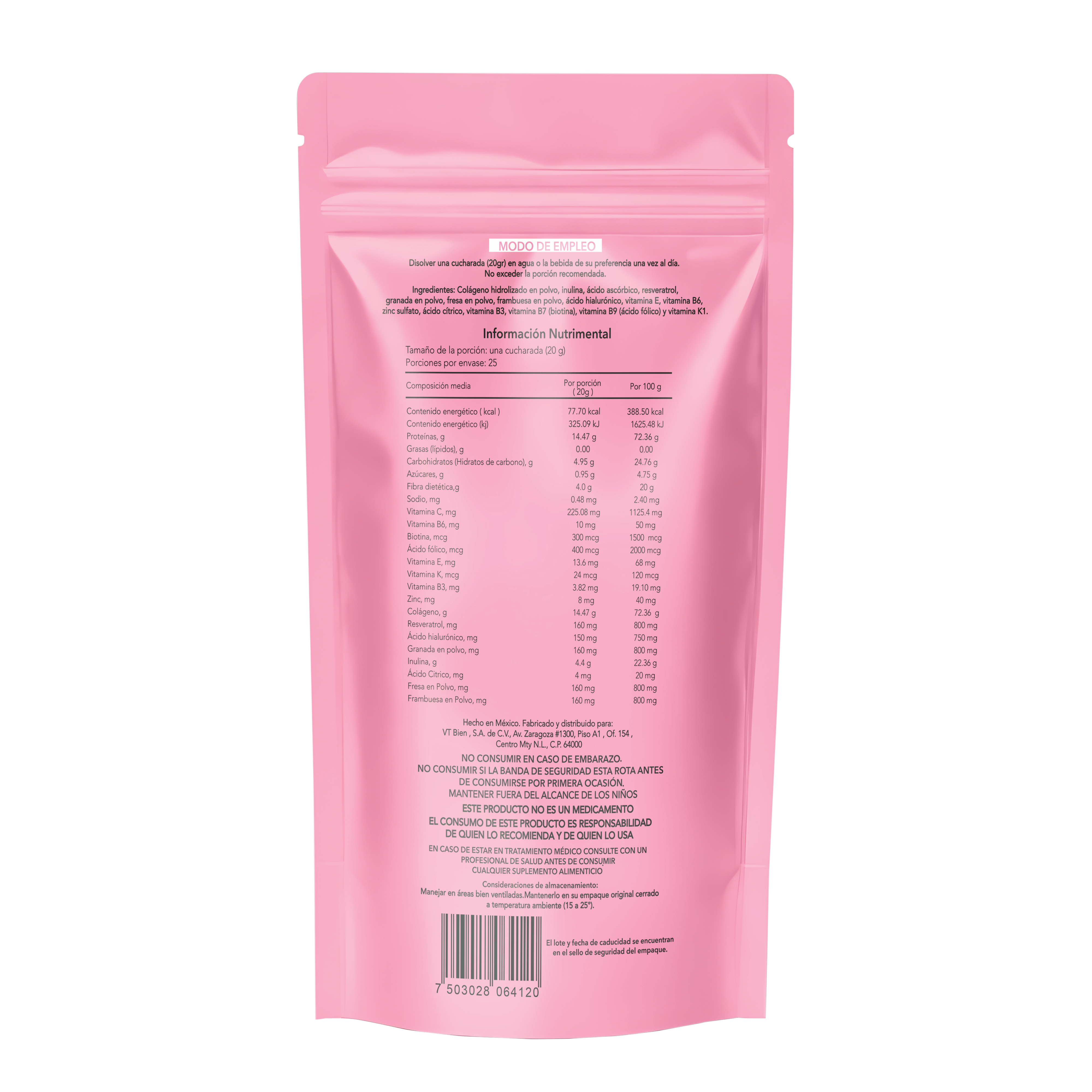 Cada scoop de esta presentación de 500 g se disuelve fácilmente en agua, jugos o batidos, integrándose sin alterar el sabor de las bebidas. Libre de azúcares añadidos, gluten y rellenos innecesarios, este suplemento representa una opción transparente y de calidad para quienes buscan reforzar sus hábitos de autocuidado.